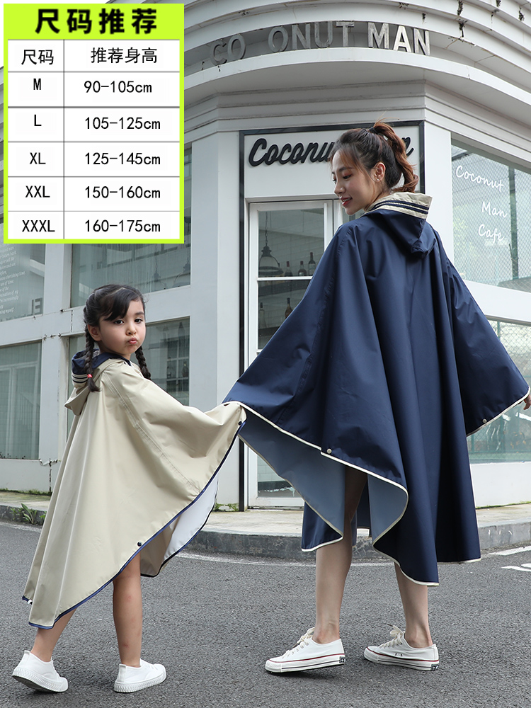 Adult parent-child raincoat full body summer bicycle cloak style female student fashion single electric car riding poncho
