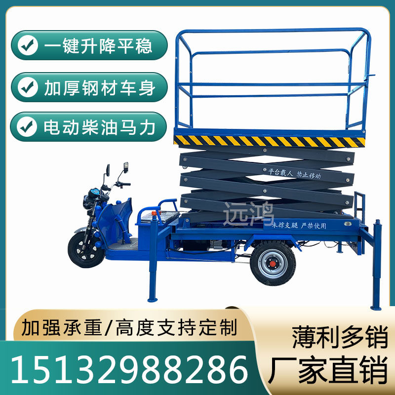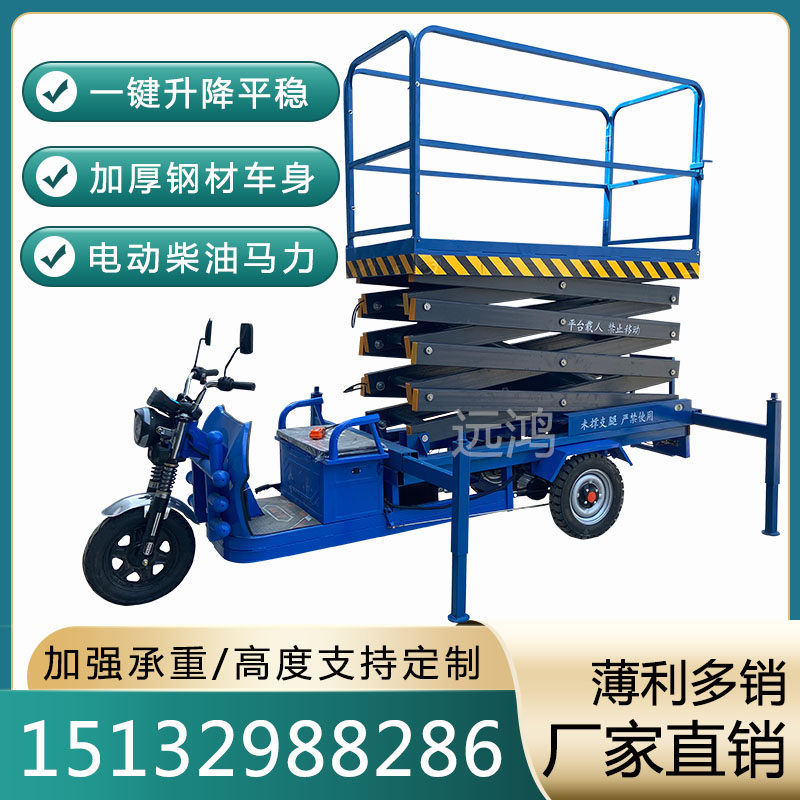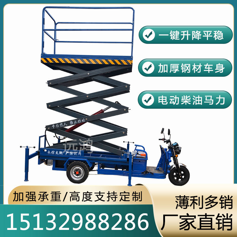Lifting platform mobile scissor electric three-wheel aerial work climbing car lift picking installation maintenance vehicle
