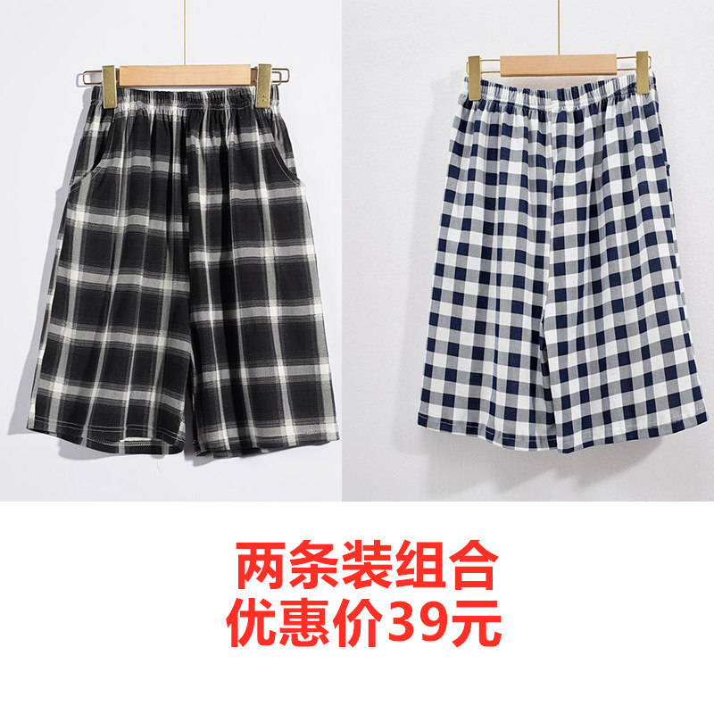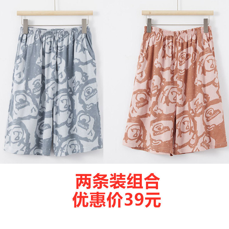 Summer sleeping pants men's home shorts pure cotton loose with large size slim fit 50% pants casual shorts 2 pieces of beach