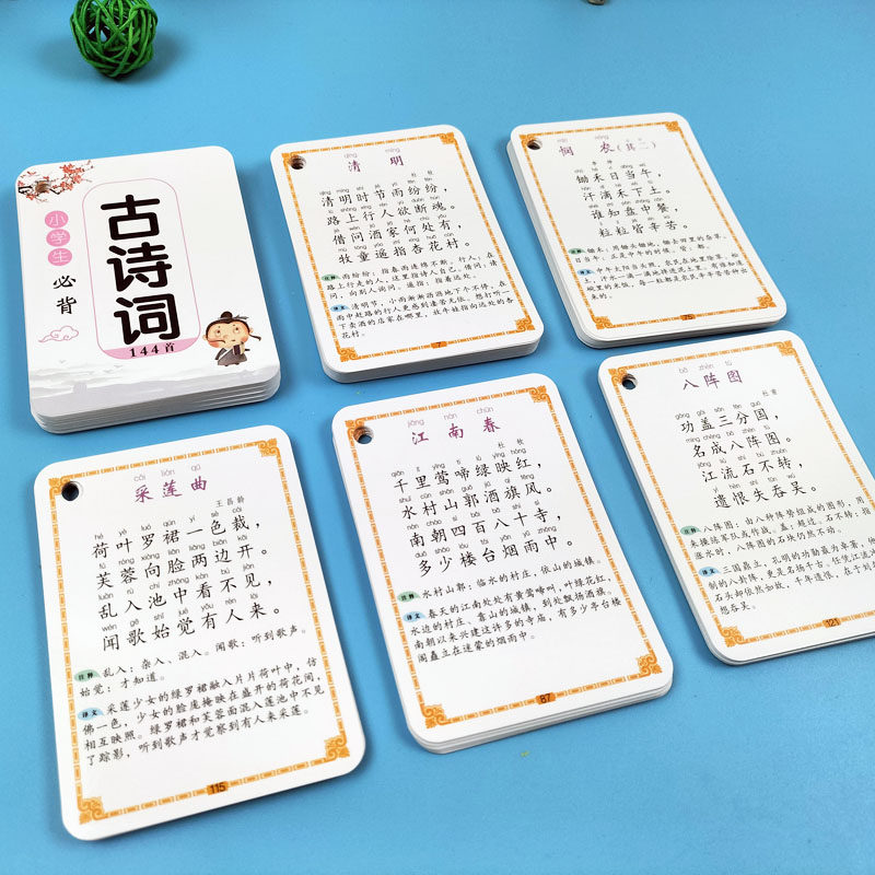 Children's ancient poetry cards a full set of elementary school students 1-6 years to see Tutang Poetry Ancient Chinese Poetry Card Literacy Early Education Card