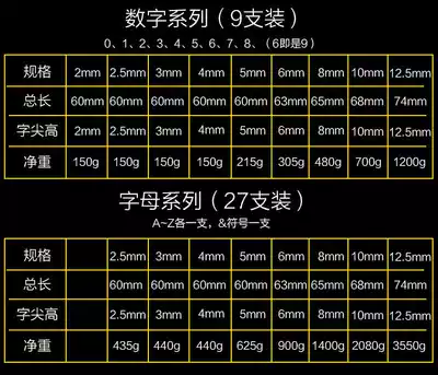 Digital steel printing steel number steel character code 0-8 English letter steel nail punch a-z base shirt spring women