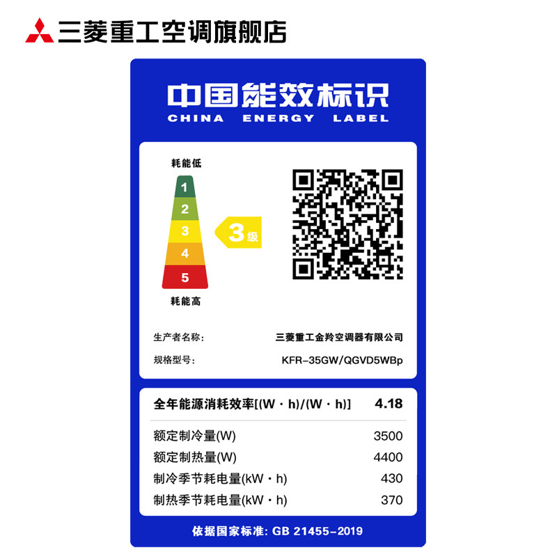Mitsubishi Heavy Industries KFR-35GW QGVD5WBp1 5 Frequency Conversion Home Bedroom Cold And Warm Air Conditioning Wall-mounted Cold Air