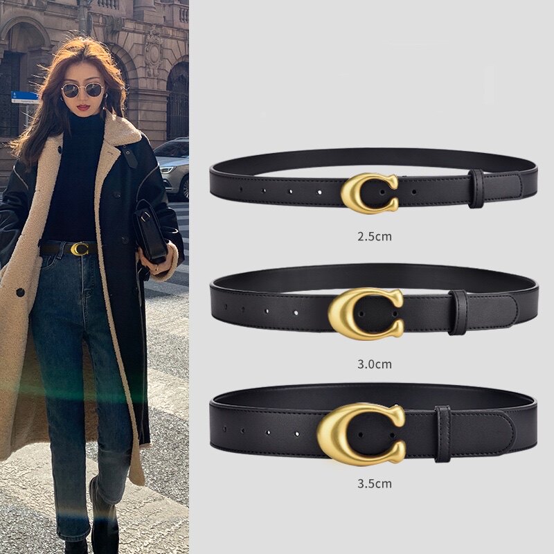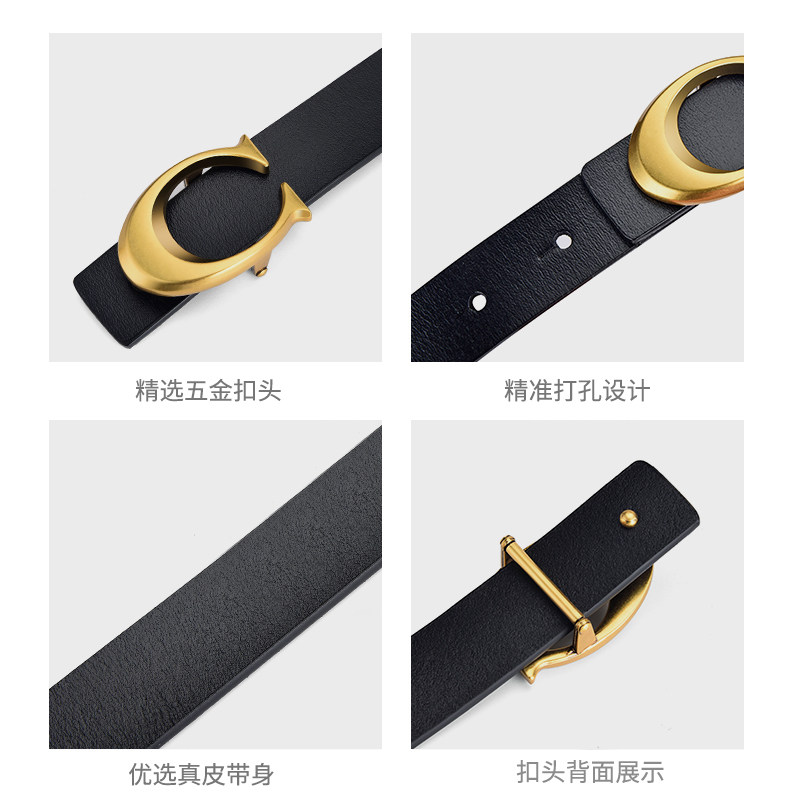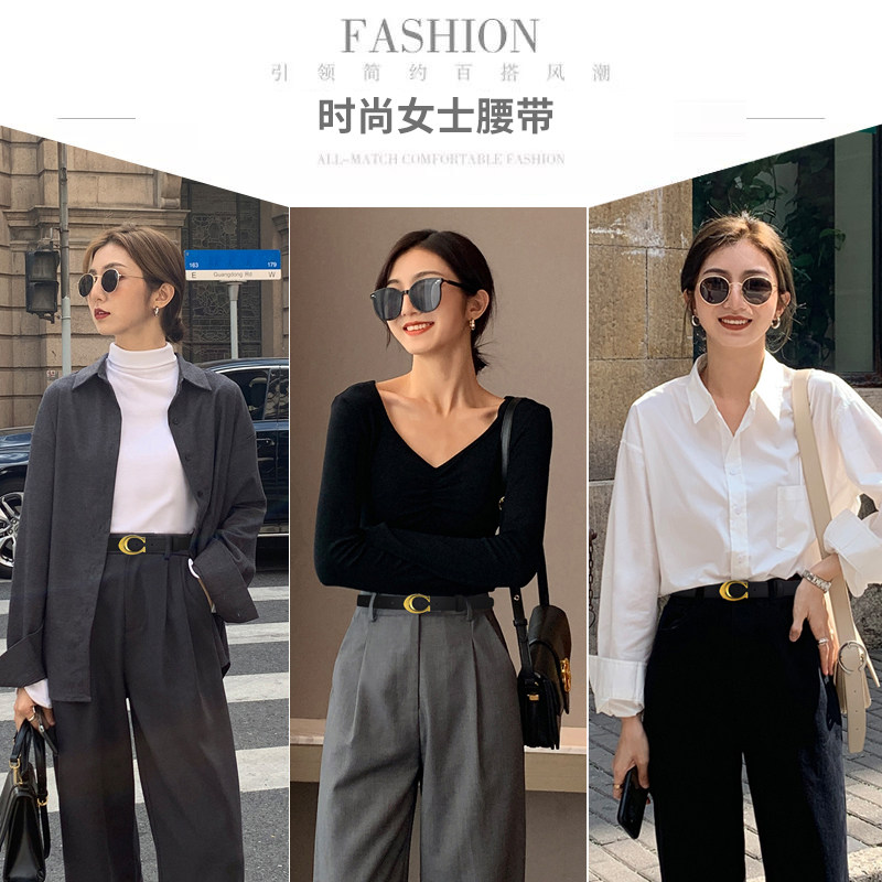 South Korea Black Genuine Leather Lady Belt Fashion 100 Hitch Jeans Decorative Belt Women Ins Superfire Minimalist Pants Strap