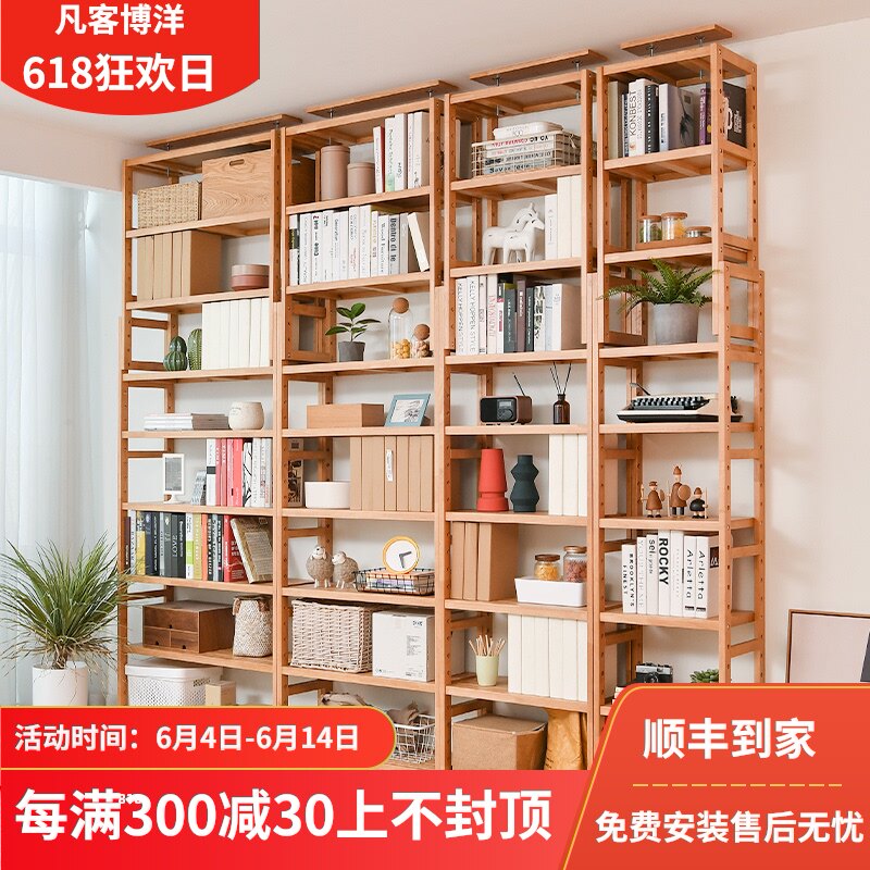 Nordic solid wood full wall bookshelf bookcase whole wall partition shelf living room home floor-to-ceiling multi-layer storage shelf bookcase