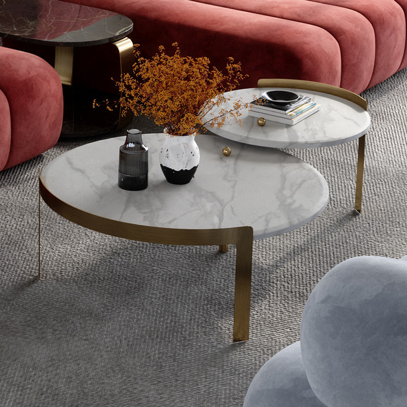 Italian light luxury round combination rock plate coffee table designer creative Nordic modern minimalist style small apartment tea table