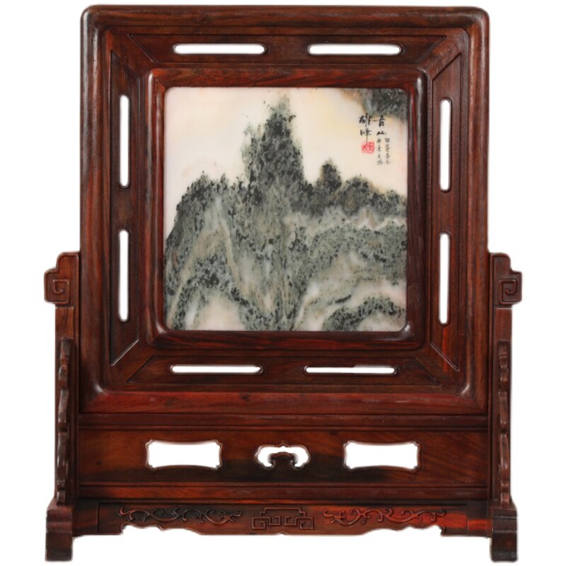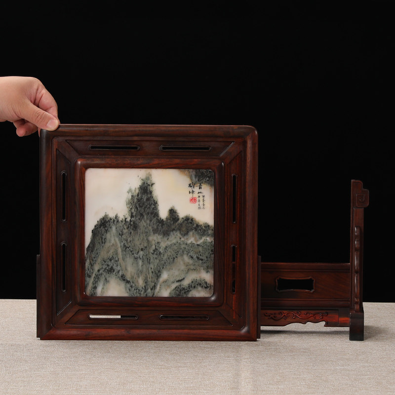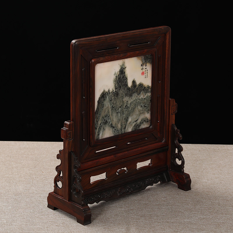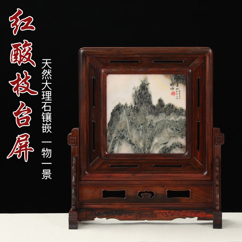 Mahogany crafts solid wood big red rosewood inlaid natural marble painting screen screen decoration table screen decoration