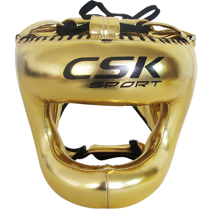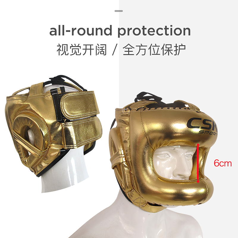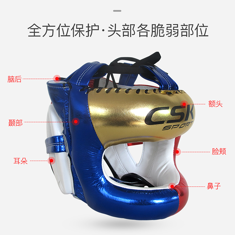 CSK China King Boxing Safety Helmet Pure Cow Leather Steel Frame Structure Full Face Cross Beam Total Defensive Strike Training Head Guard