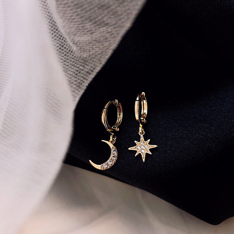 Stars Moon ~ Asymmetrical Design ~ Ear Needle Advanced Sensation Earrings Woman Small Crowdwear New Tidal Net Red Temperamental Tide