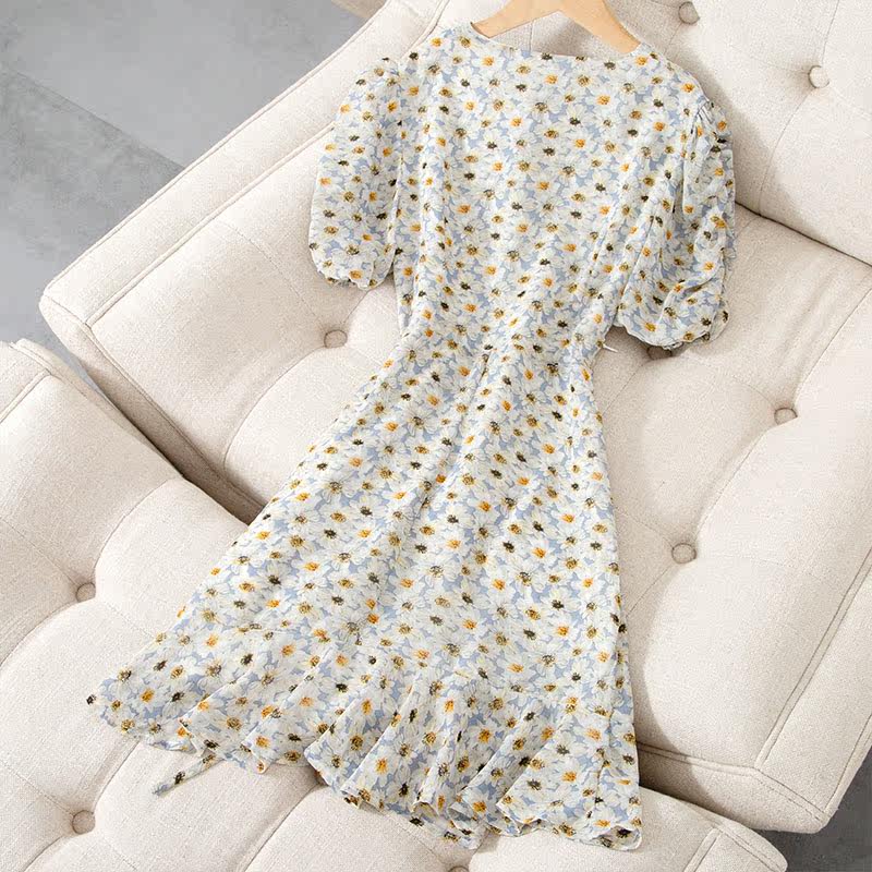 Special price clearance 2021 floral chiffon dress women's summer mid-length French casual tea break skirt irregular