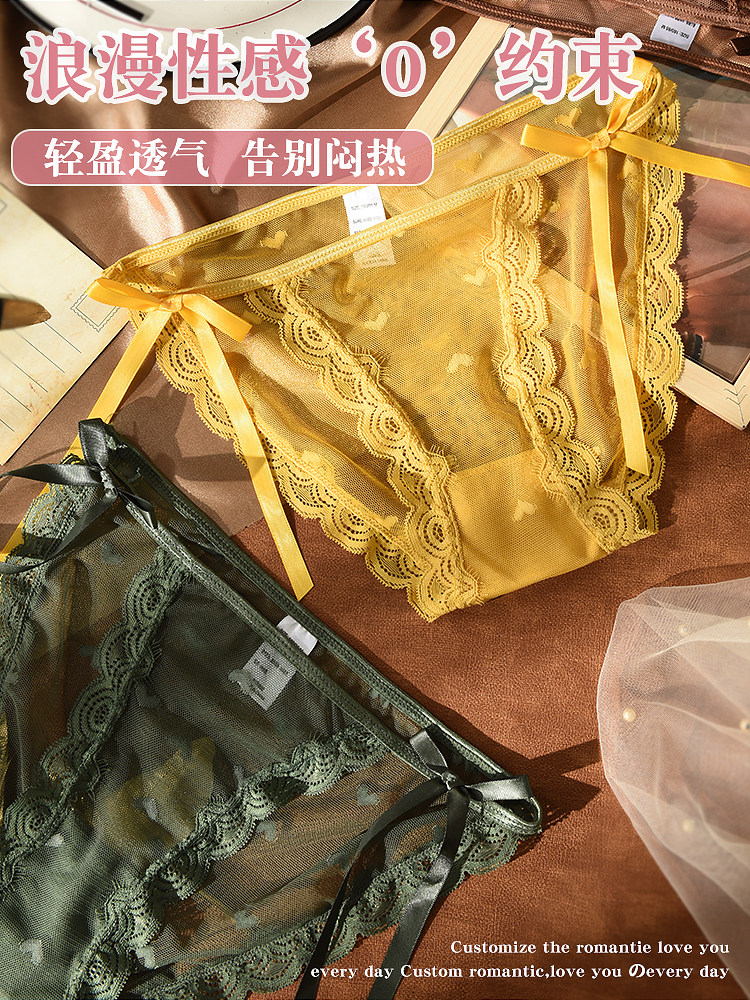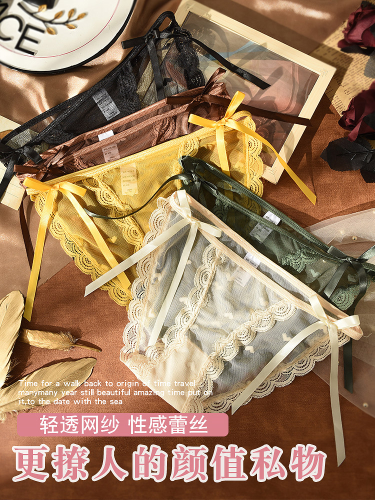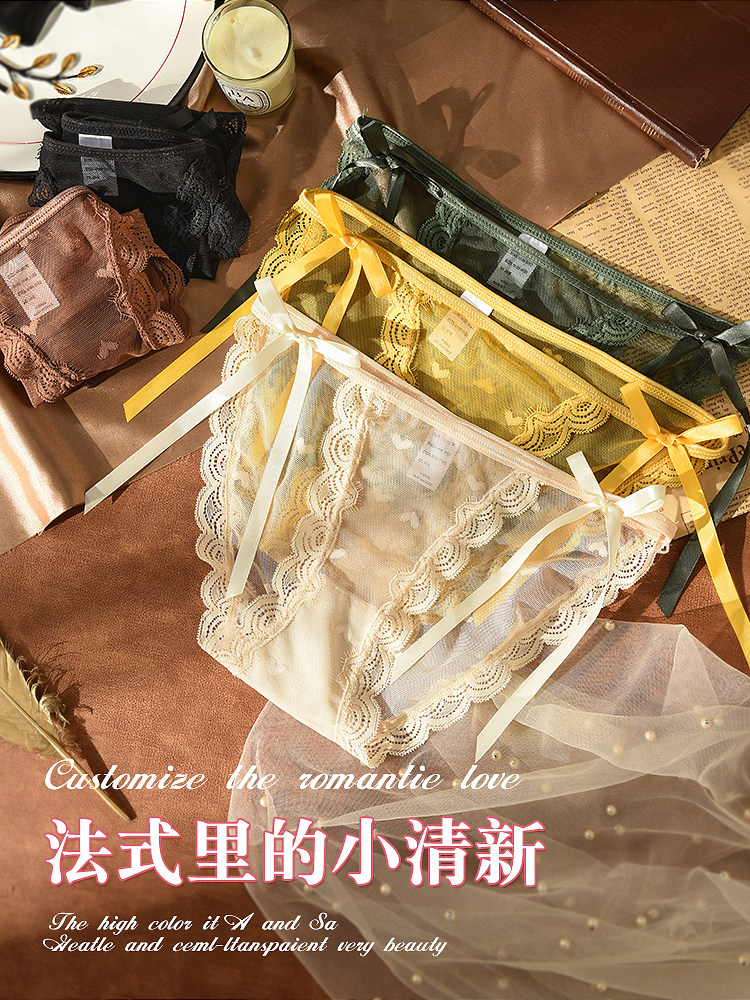 Sexy lace underwear lady triangle mesh transparent Japanese sweet butterfly bow core low waist breathable speed dry