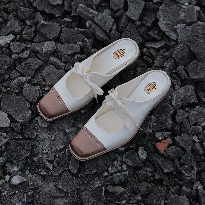 Ding Yin Studio ) Original designer retro - head piece Muller shoes outside wearing female handmade shoes