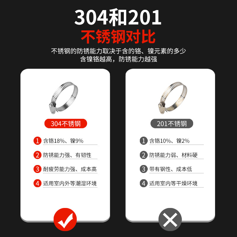 304 diameter 6-12mm wide 8mm 304 diameter 9-16mm wide 8mm 304 diameter 13-19mm wide 8mm 304 diameter 16-
