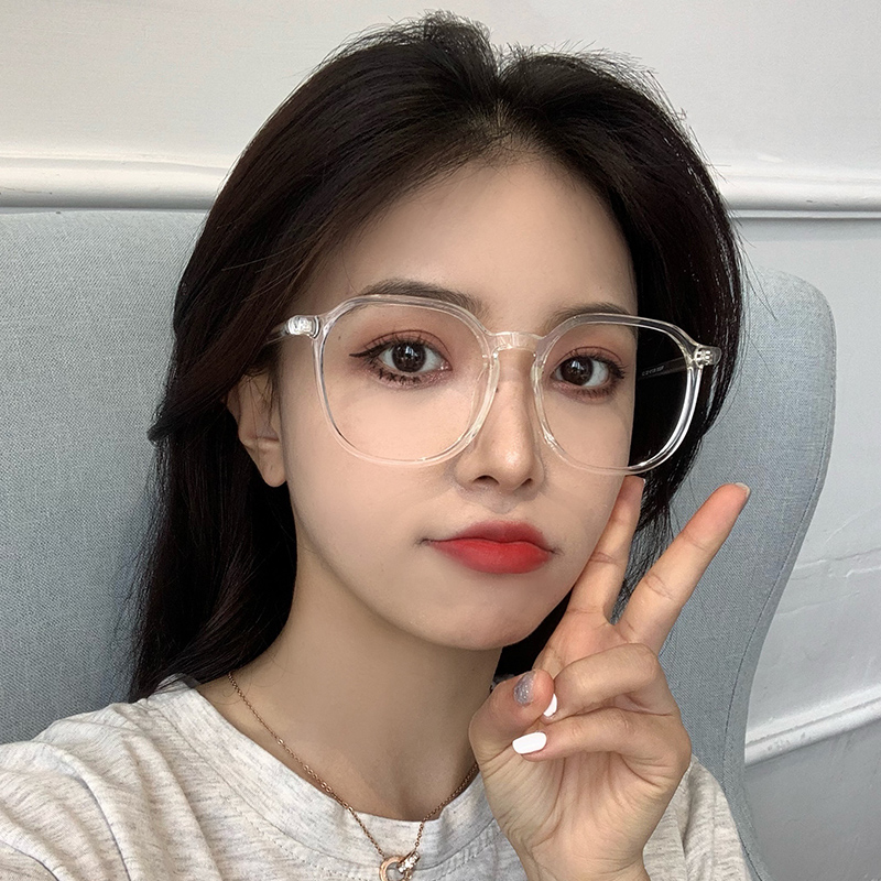 Glasses myopia women can match the degree of anti-blue light radiation eye frame net red round face plain face black frame flat mirror tide