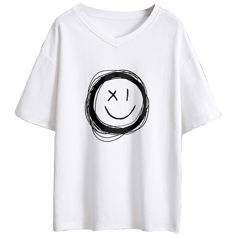 Large size white V collar T-shirt female summer Korean version 200 catty mm loose 100 hitch plus fat increase short sleeve blouses woman