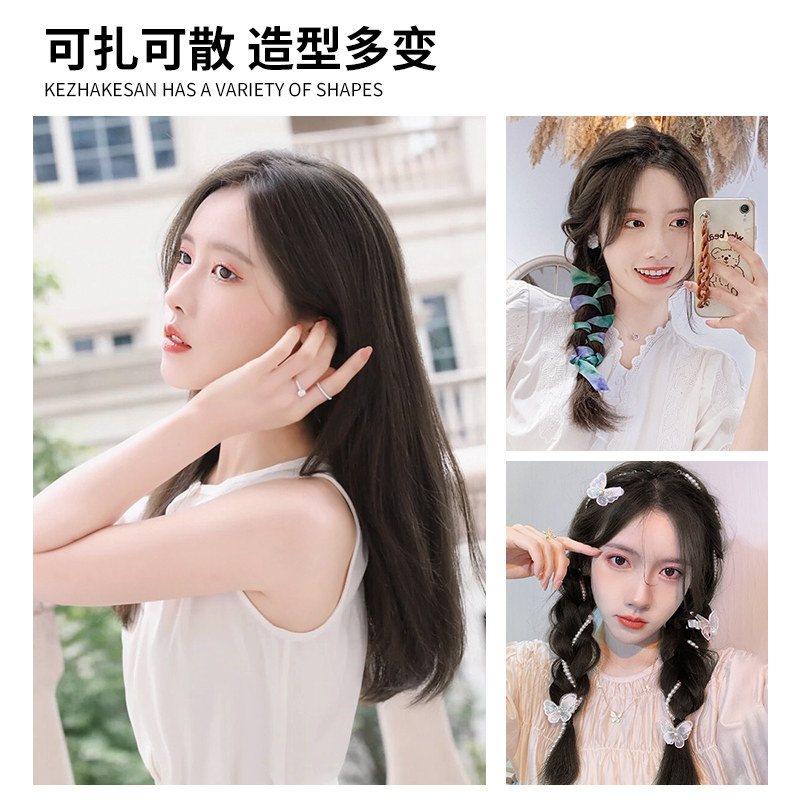Wipe piece female long hair one piece additional hair volume fluffy three piece patch patch hair attachment natural full head simulation human hair Silk
