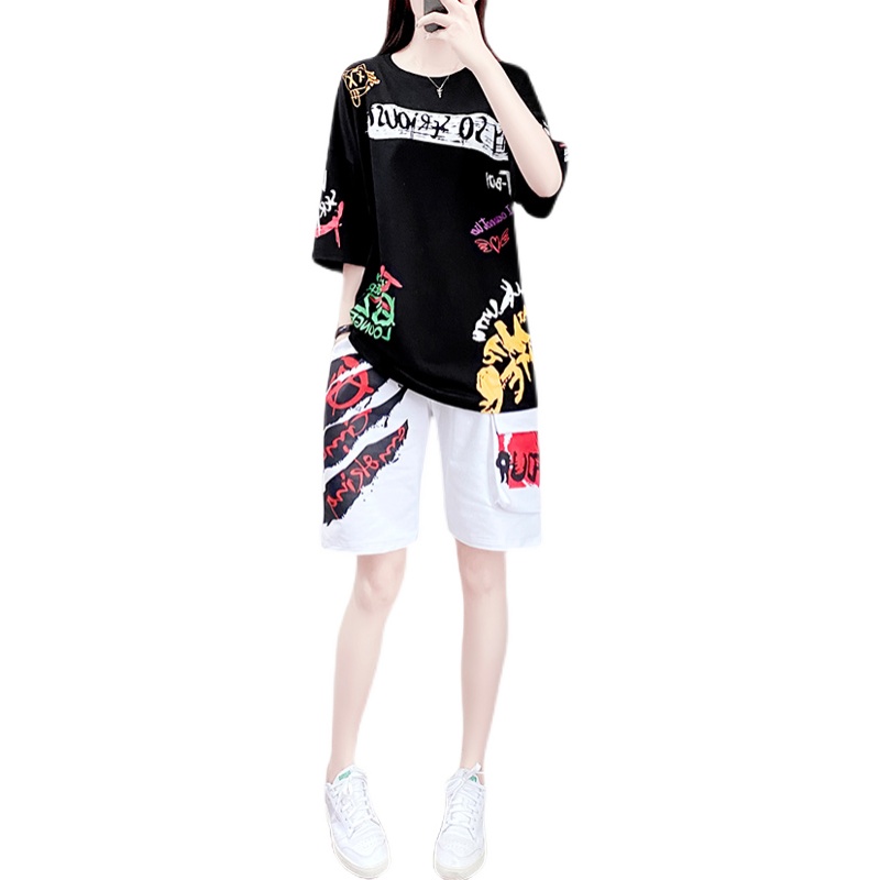 2022 New Summer Shorts Casual Sports Suit Women Fashion Foreign Air Breathable Eins Tide Two Sets