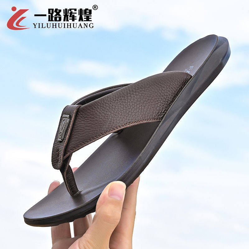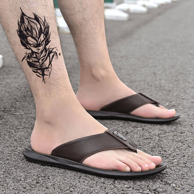 2023 Buff beach shoes men soft - solid slippers outdoor leisure men driving fashionable leather drag