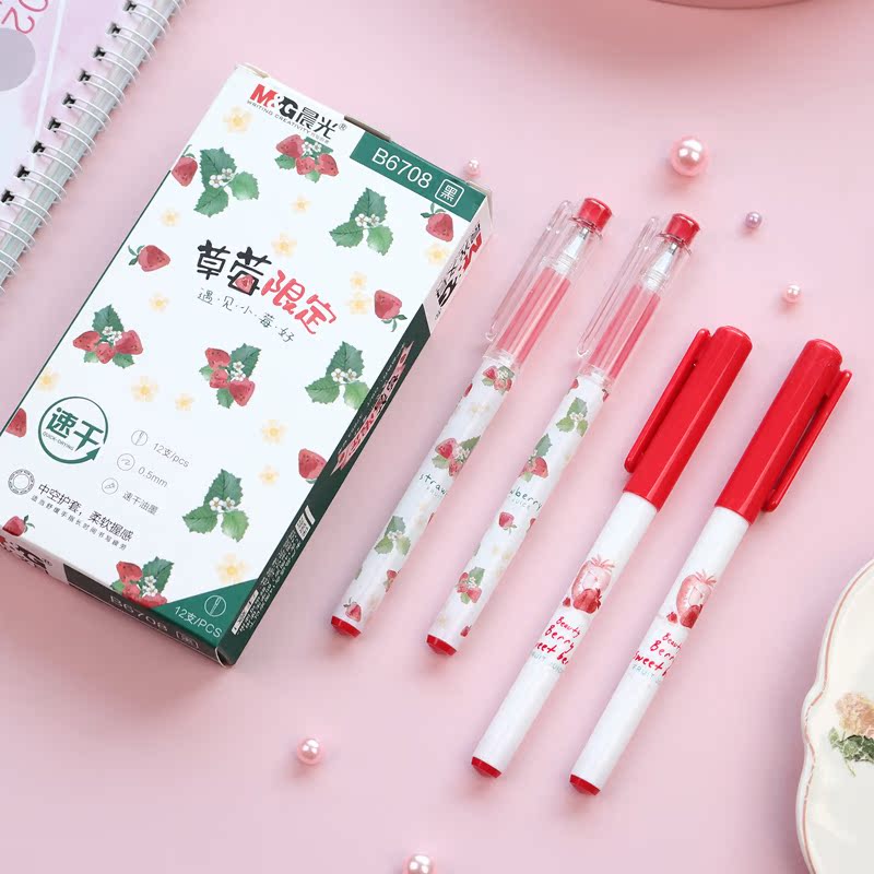 Morning light Strawberry limited speed dry medium pen 0 5mm little fresher young girl's heart anti-fatigue water-based pen student with B6708