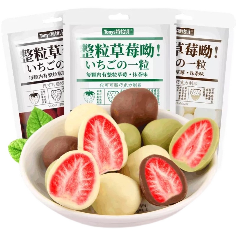 Teesse Whole Freeze-Dried Strawberry Sandwich Chocolate Milk Matcha Cocoa Flavor Casual Snacks Individually Packaged