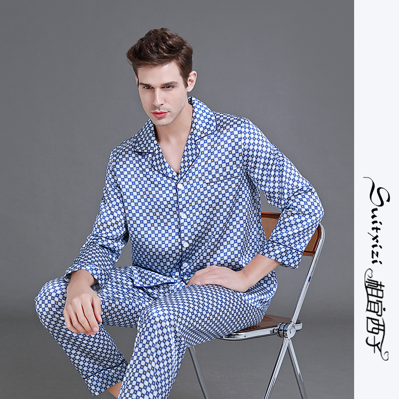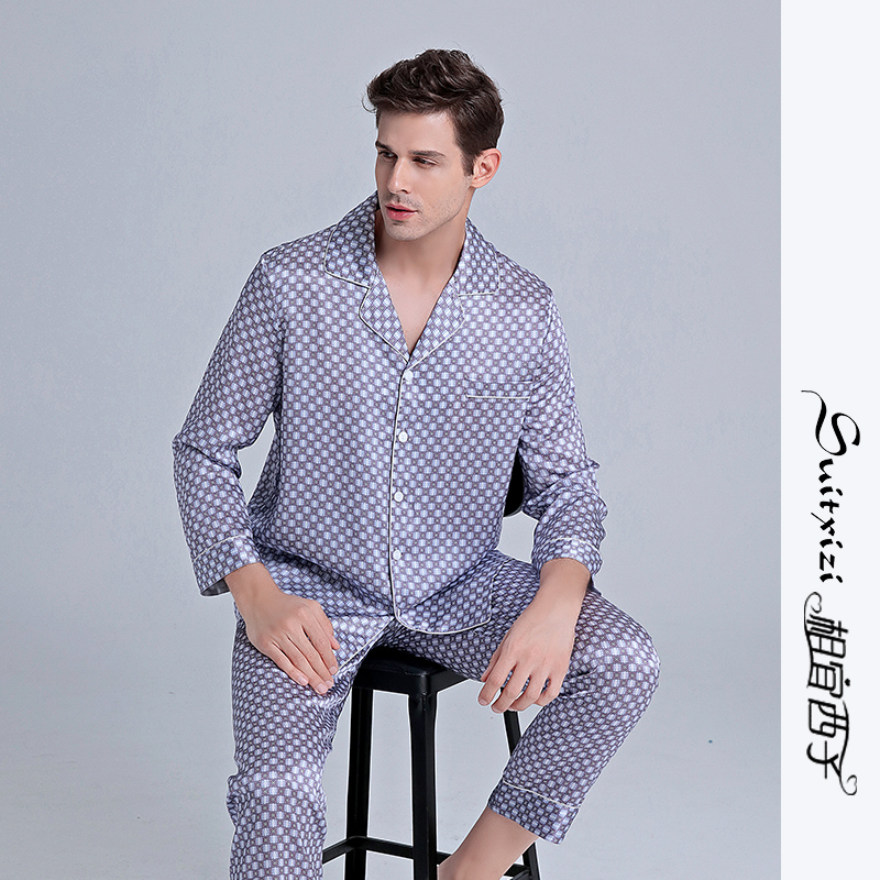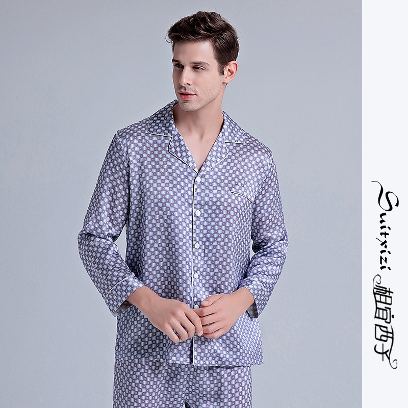 Phase Pleasant West Weight Lbs 22 Mmereal Silk Pyjamas Men Long Sleeves 100% Mulberry silk family clothes in two sets spring summer