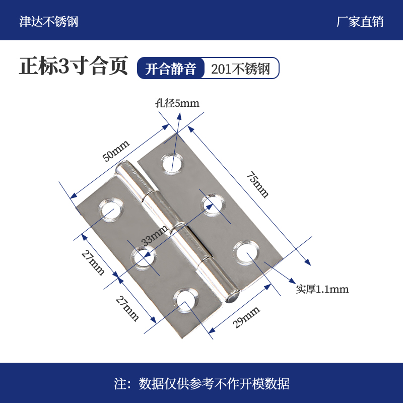 Honorary 3-inch stainless steel hinge flat open page door and window hinge bright small hinge 75*50*1mm
