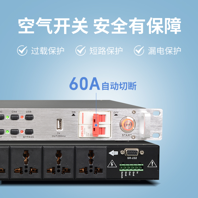 Professional 8-way 10-way power sequencer stage meeting high-power socket sequence manager protection controller
