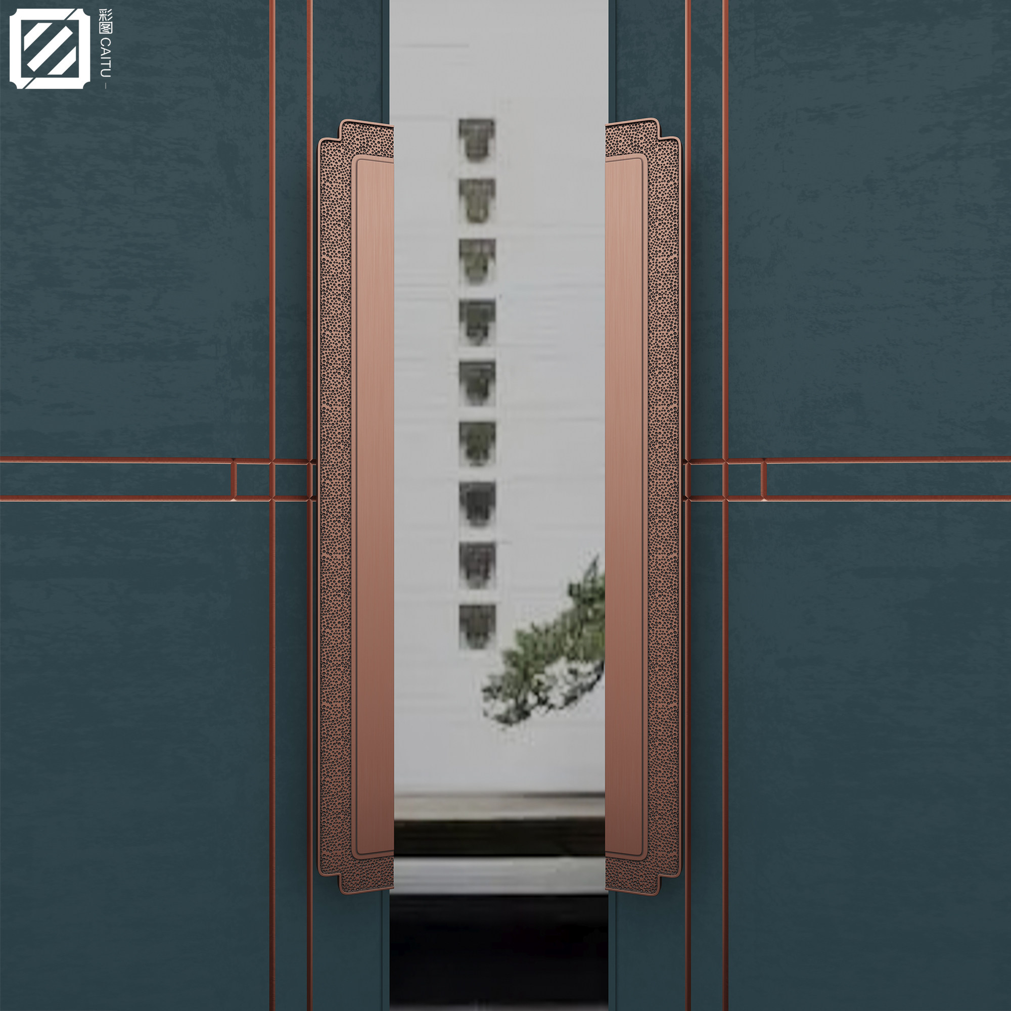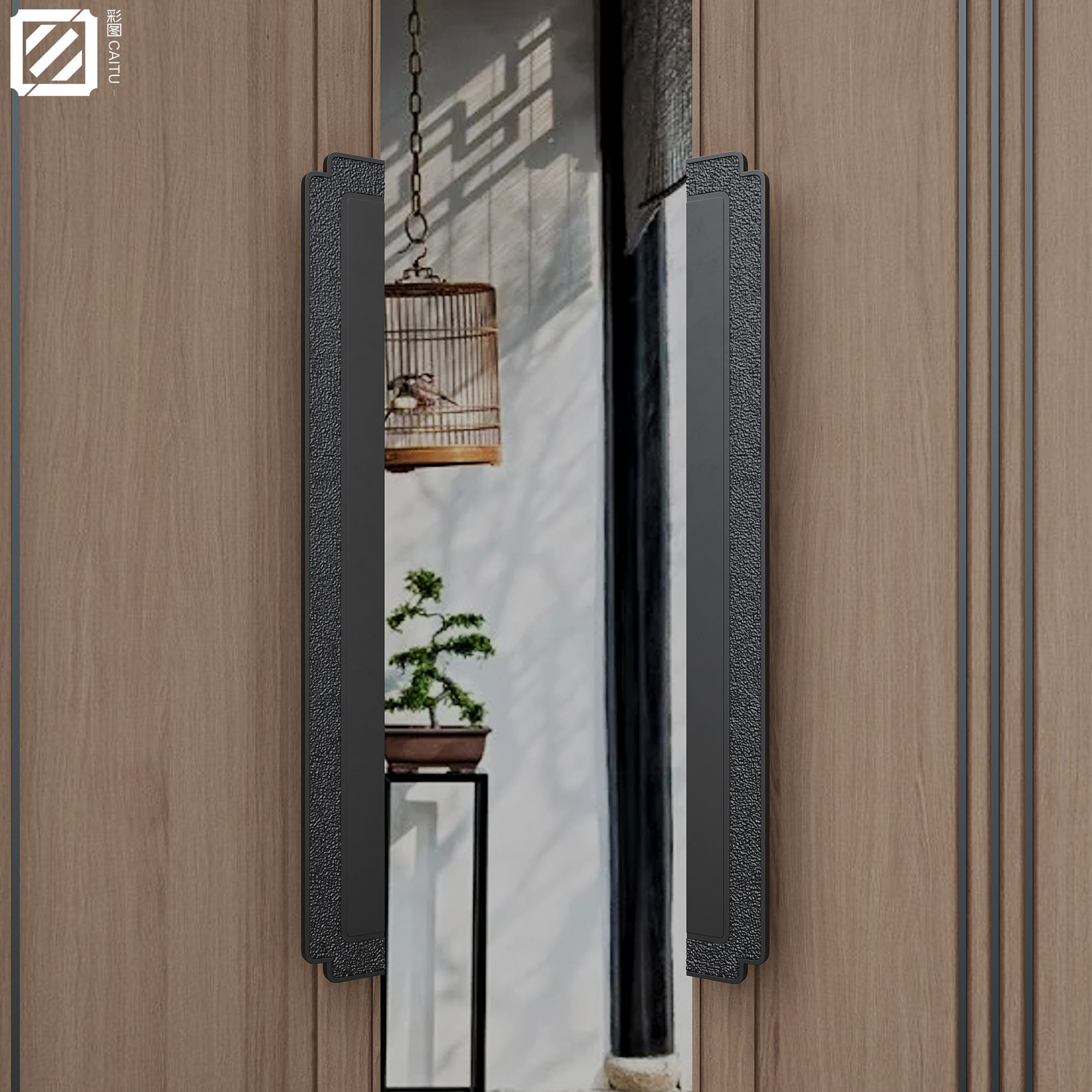 New Chinese style solid wood door handle antique copper color custom villa hotel box surface mounted glass door handle black