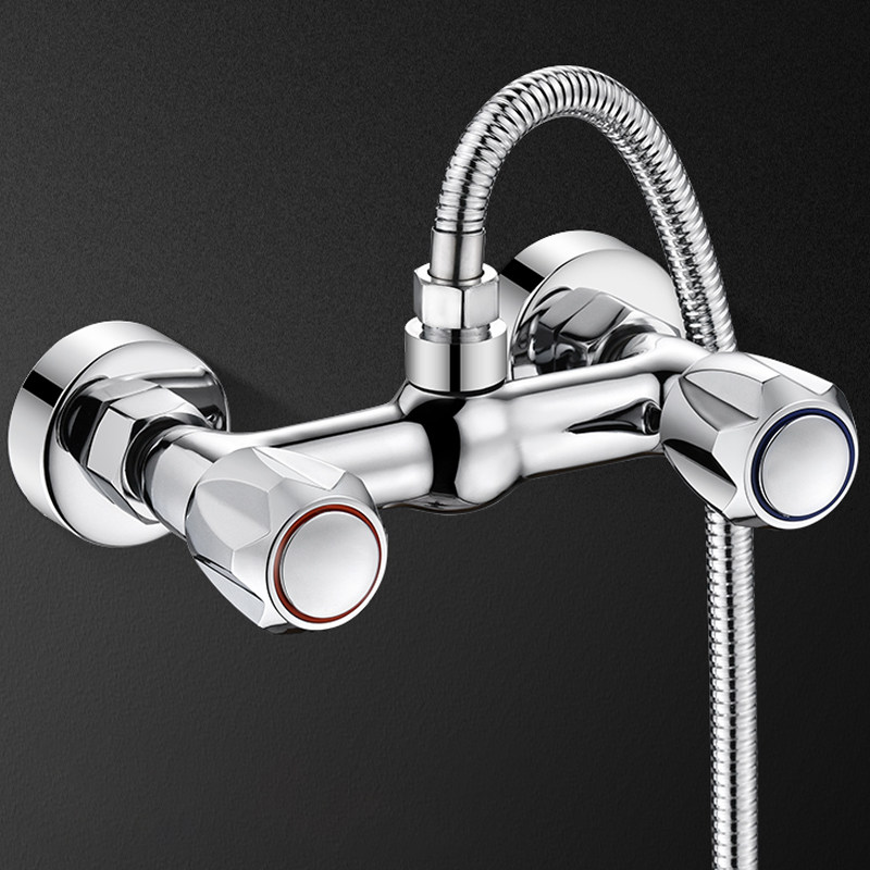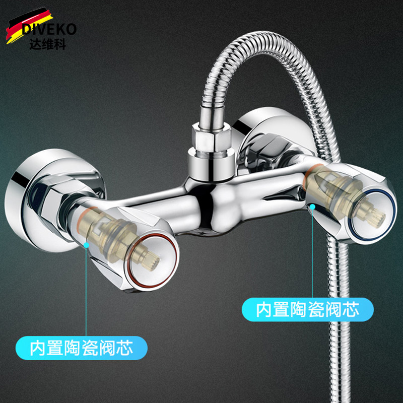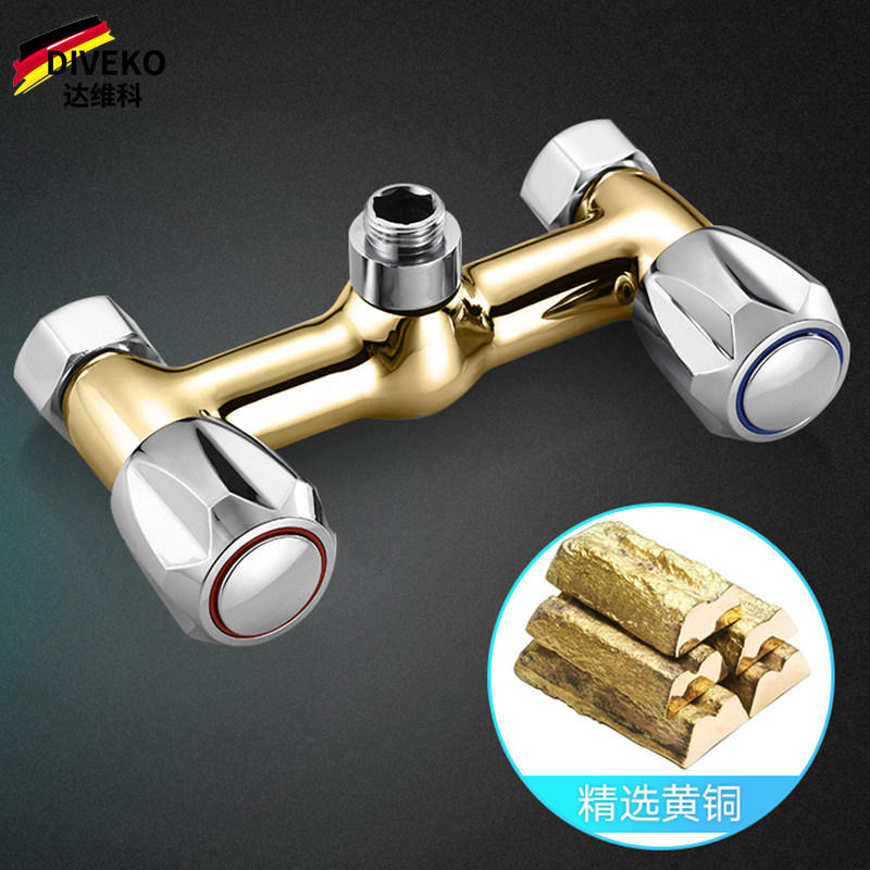 Full copper shower faucet bathroom bathtub gas water heater tap hot and cold double cut double cut into wall type water mixing valve