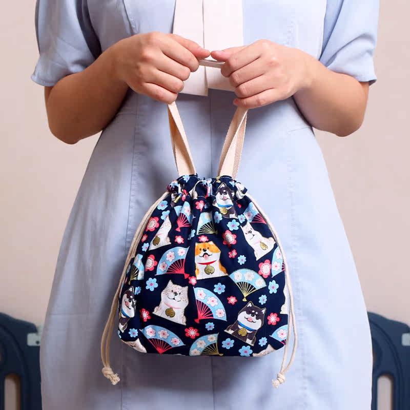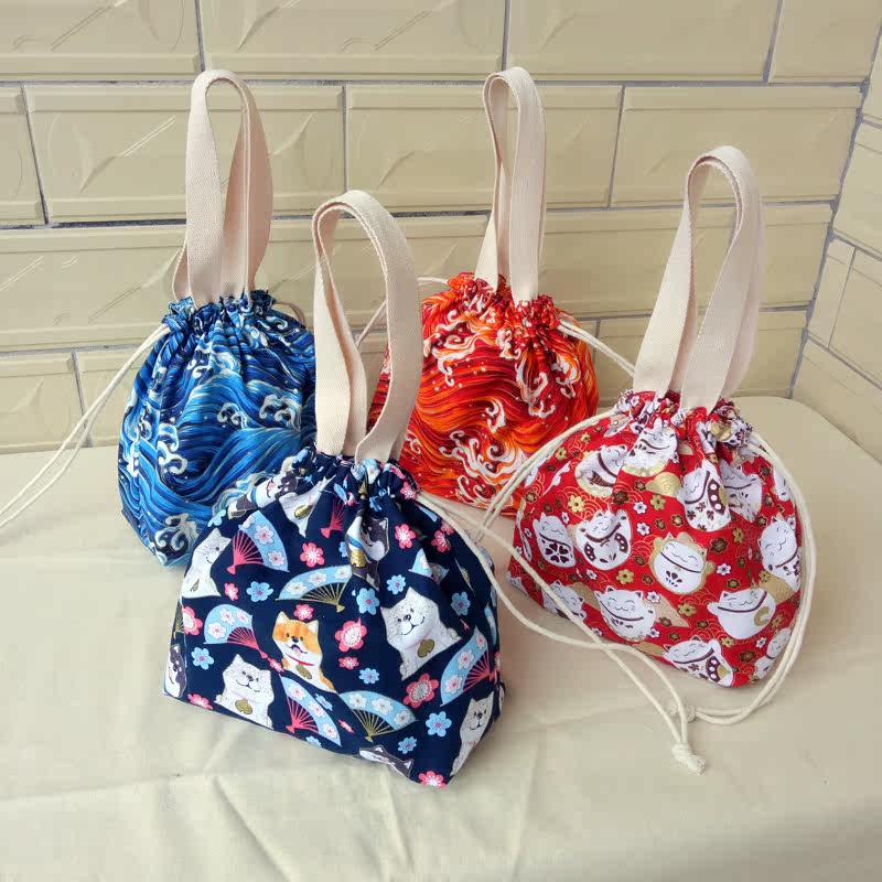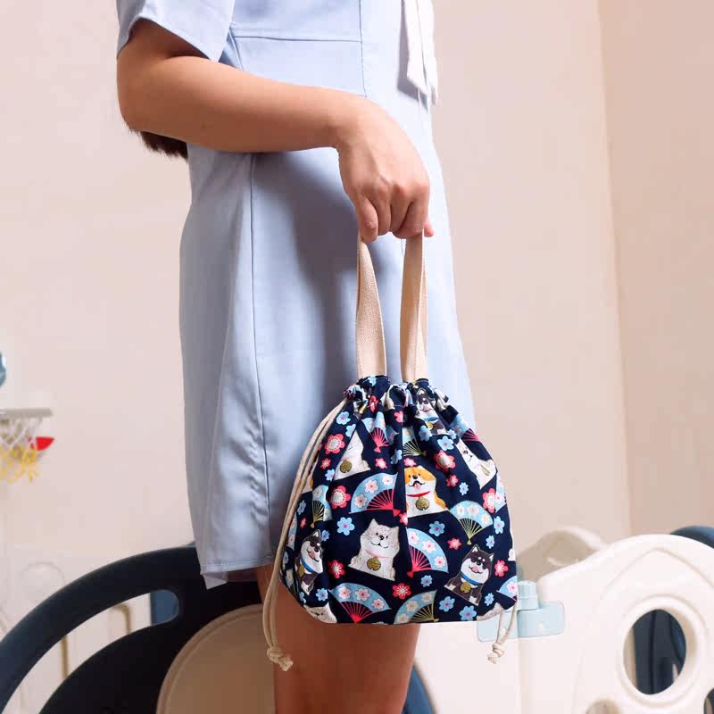 Day style and wind lunchbox with boxed lunch bag Bag Bunch Pocket Draw Rope Containing student cute handbag
