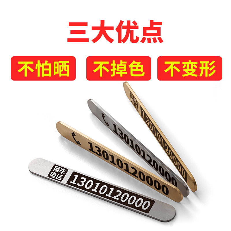 No fading, no deformation, metal temporary parking phone number plate brass stainless steel car moving license plate lettering