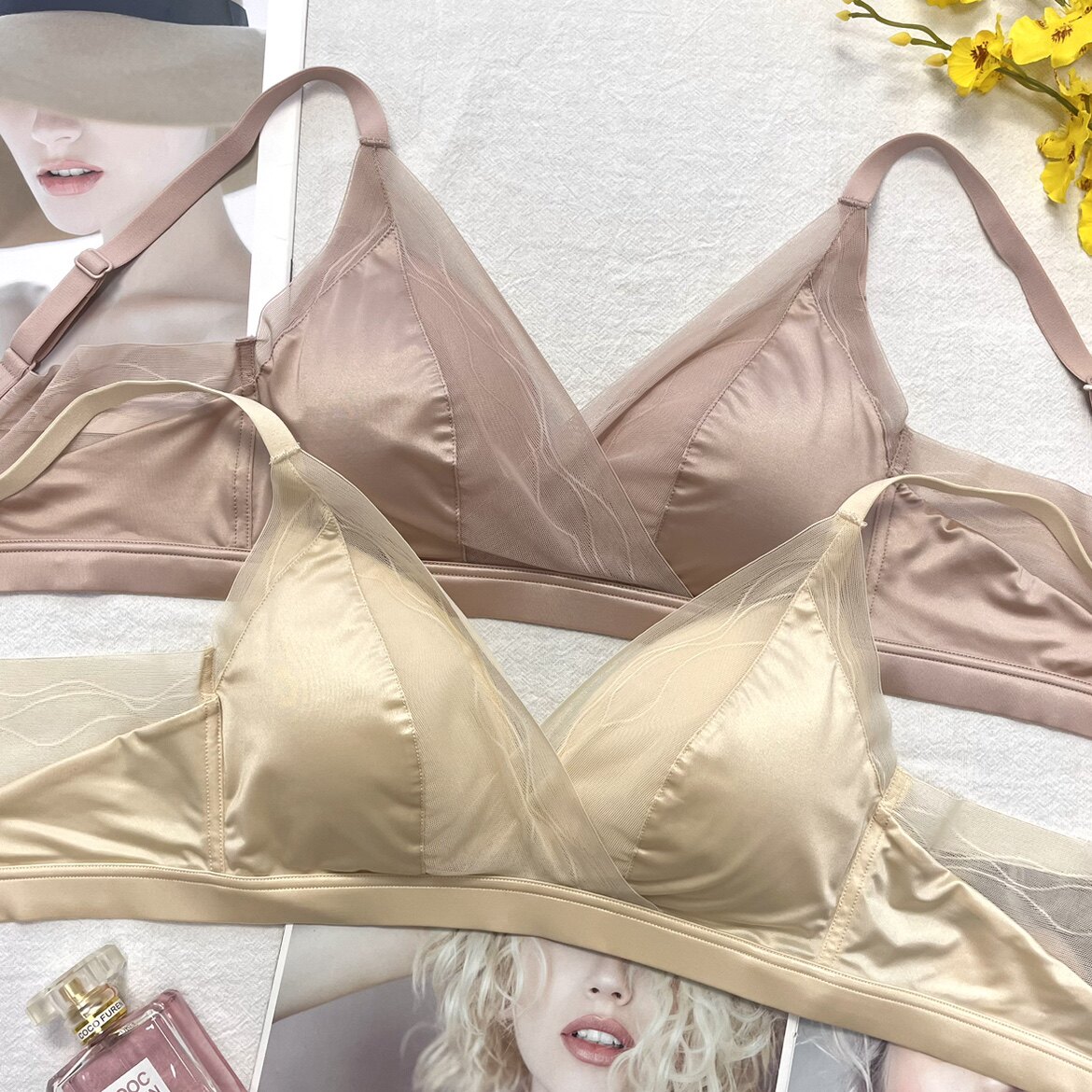 Mulberry silk maintenance underwear women's French triangle cup silk beautiful back latex cotton fixed thin cup no steel ring bra