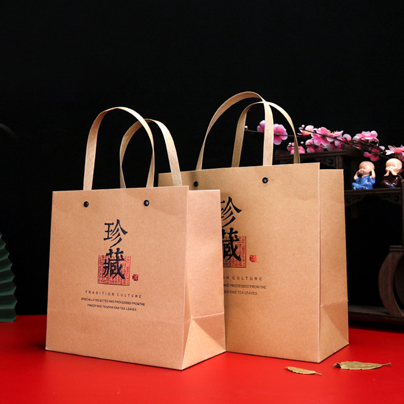 Kraft paper tote bag custom tea packaging retro kraft paper bag gift bag universal firm thickened hand bag
