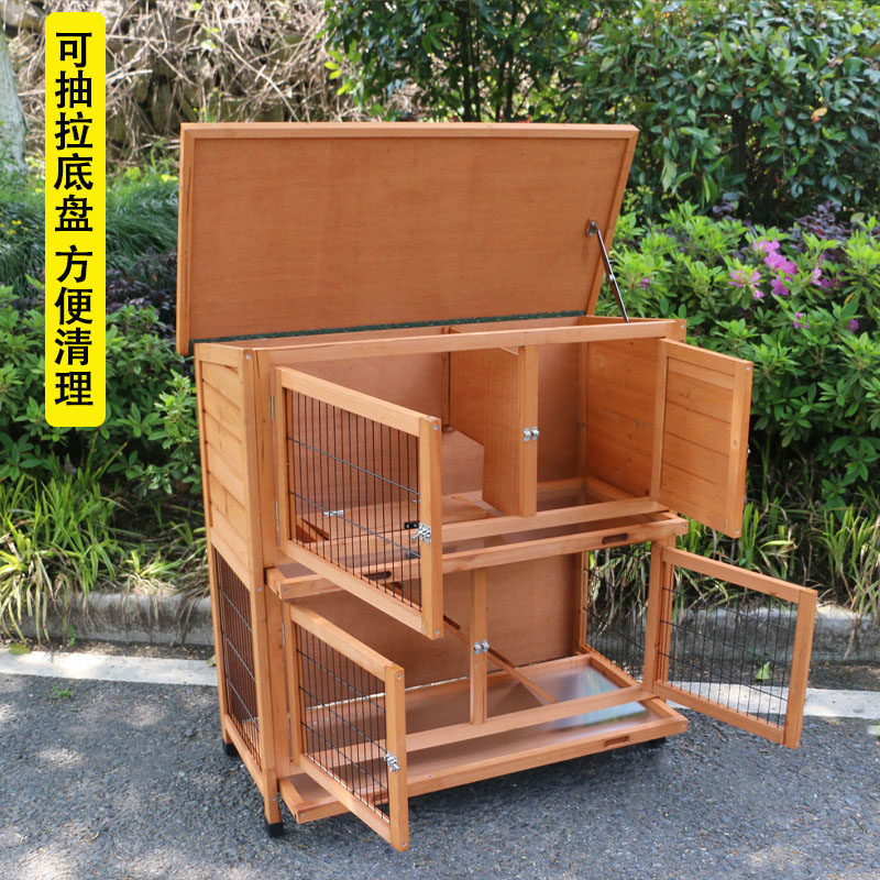 Wooden rabbit cage Rabbit house Rabbit house Hamster cage Chicken house Chicken house rainproof sun protection outdoor cat nest Cat cage Double layer rabbit cage