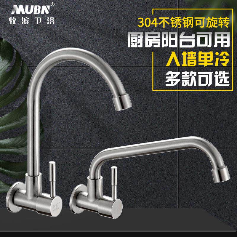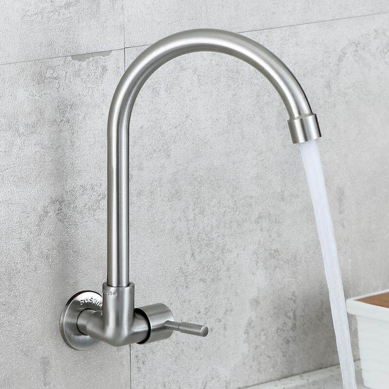 Stainless steel horizontal tap Single-cold kitchen tap sink Sink Wash Basin into wall-style rotary pool Anti-burn and durable