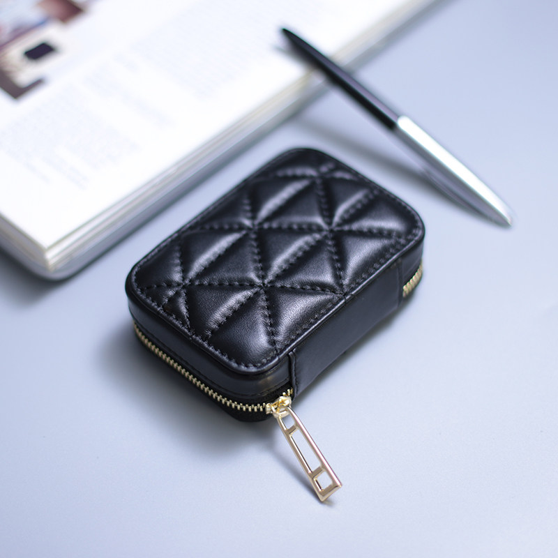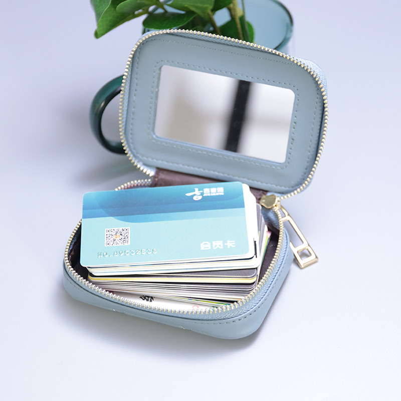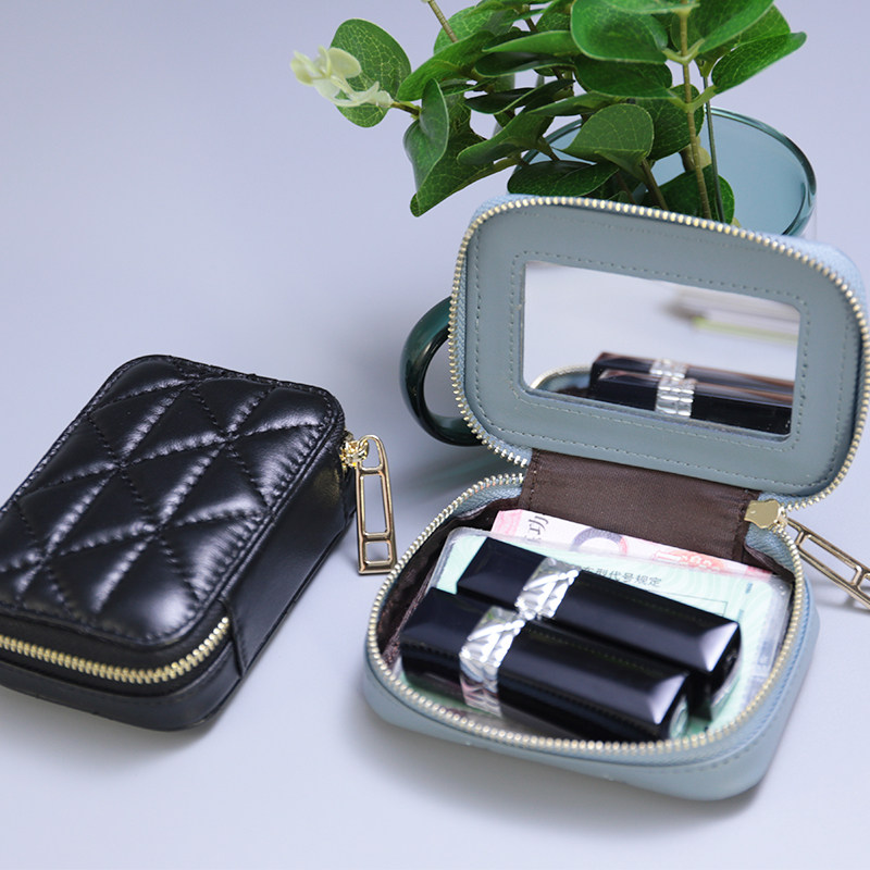 Japan-ROK mini real leather driver's license card bag mouth red packet with mirror cow leather makeup bag data line headphone containing bag