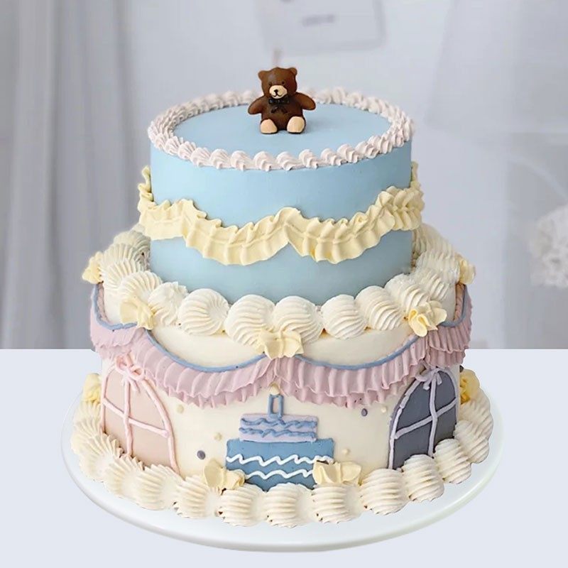 2022 new double-layer simulation birthday cake model flowers flower wedding net red custom plastic window sample