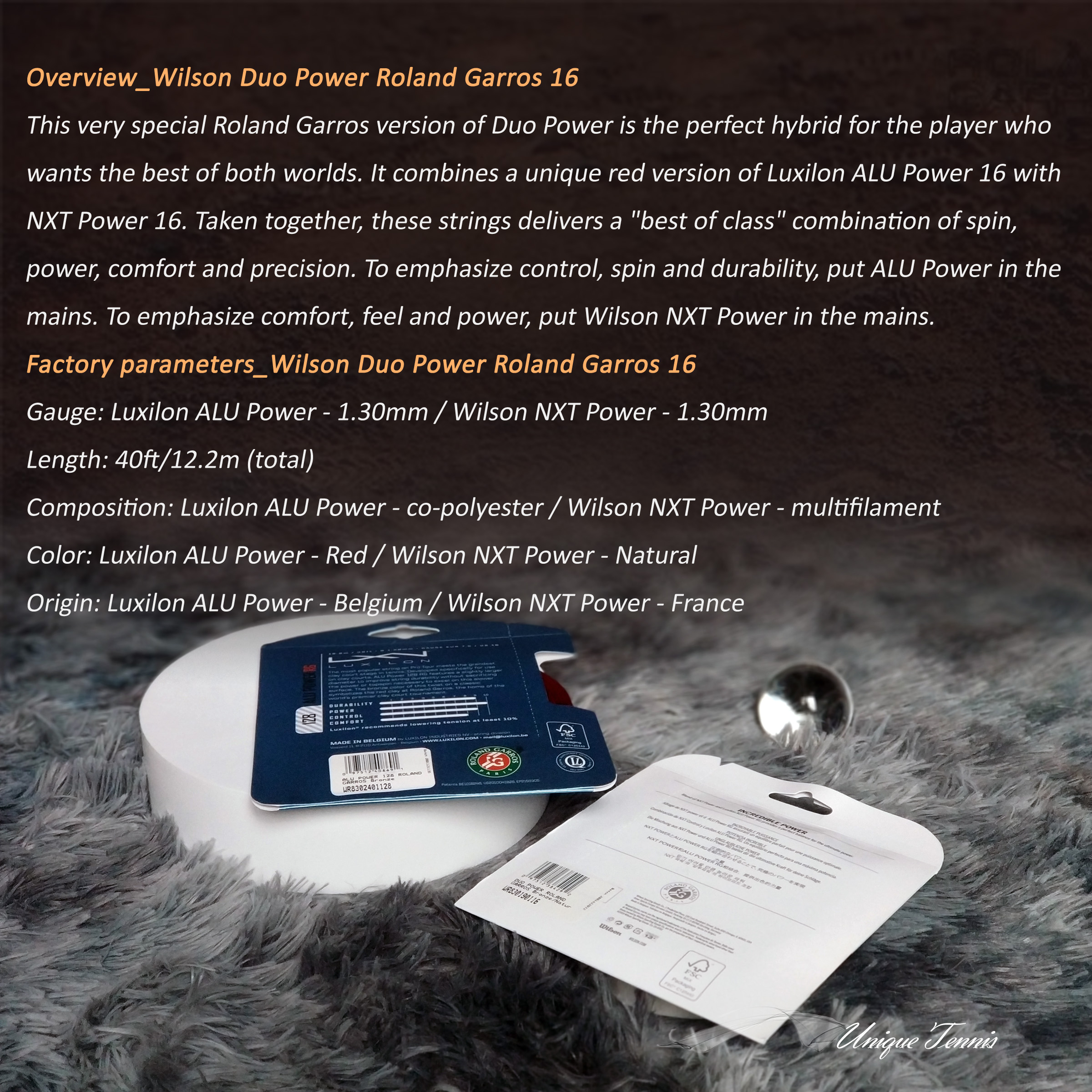 2021 French net Roland Garros limited tennis line Wilson DuoPower Luxilon ALUPower