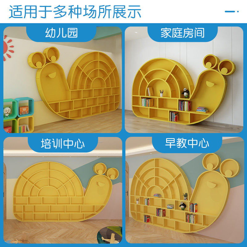 Cartoon snail shape full wall bookcase children's creative bookshelf training institution picture book library shelf storage wall