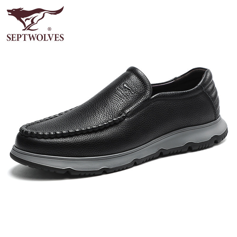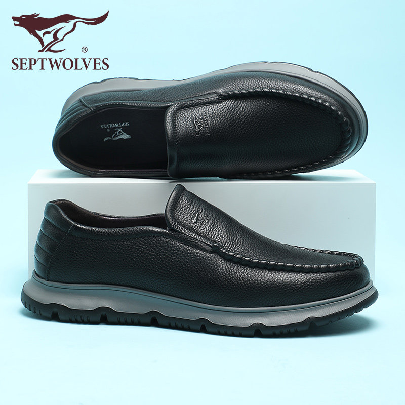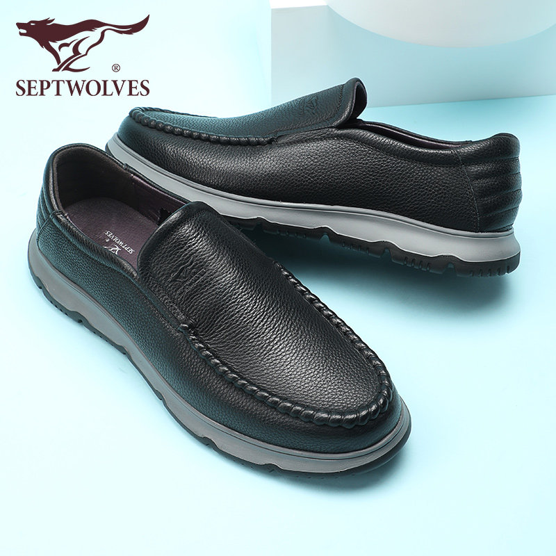 Septwolves men's shoes summer slip-on dad casual shoes middle-aged soft-faced leather thick-soled shoes casual leather shoes men