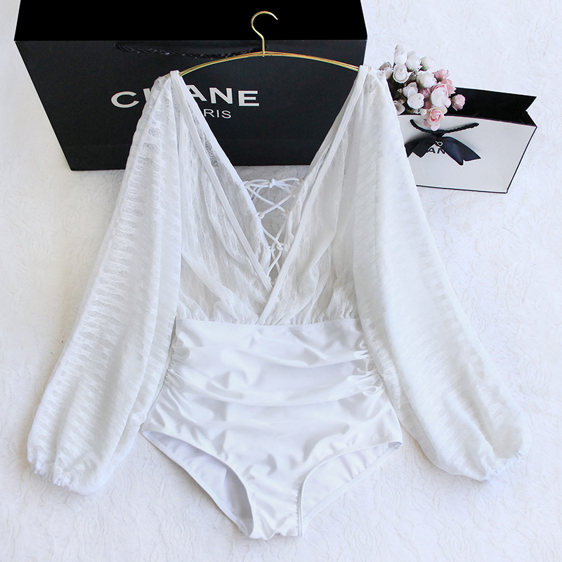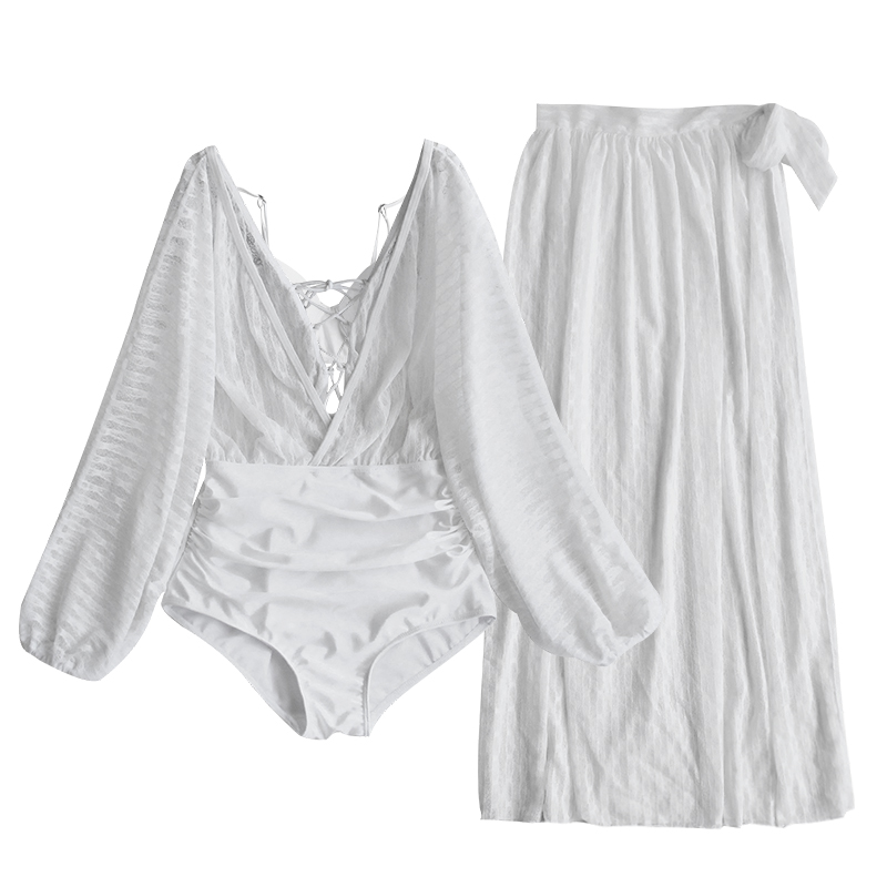 White Swimsuit Women Spa Summer Conservative even body Long sleeves Long dress Holiday beach skirt Conspicanthin Shade of Flesh Swimming Costume
