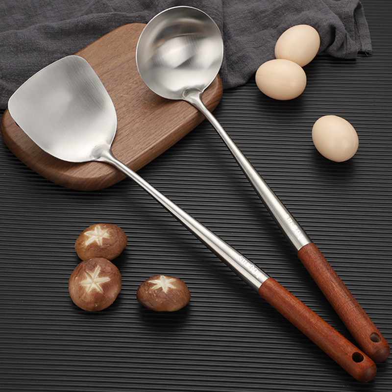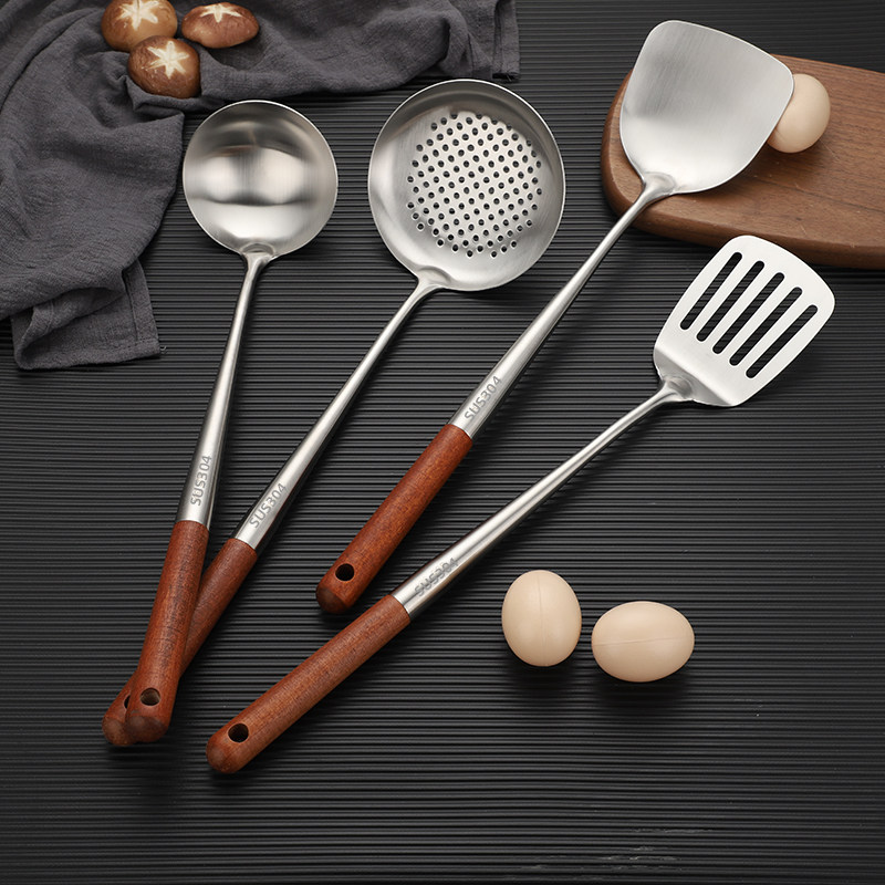 304 stainless steel cooking spoon chef special cooking spoon household spatula soup spoon plus long handle iron pot spoon set large