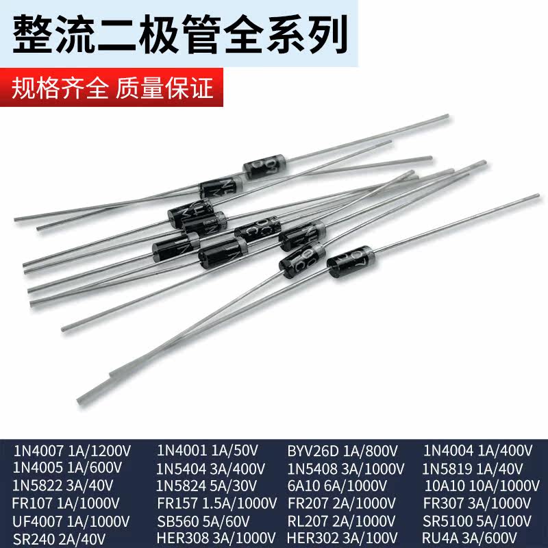 1N4007 10A10 1N5408 1N5819 1N4001 5822 Rectifier diode stage IN4007 IN-line