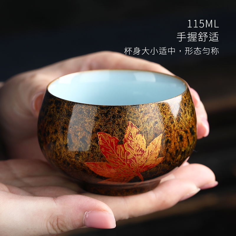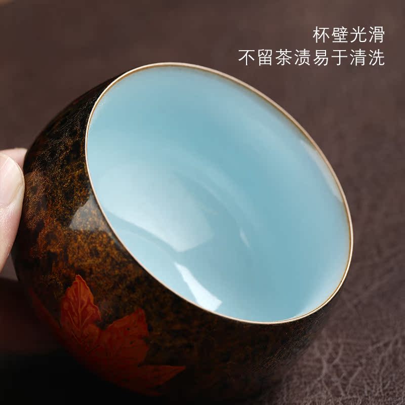 Miaolian Tianxiang Ceramics Large Lacquer Ru Kiln Craft Tea Set Maple Leaf Master Cup Handmade Tea Cup Single Cup Personal Cup