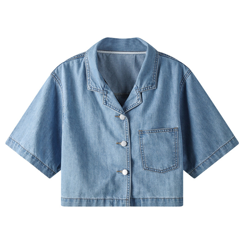 French short-sleeved denim shirt women's loose 2022 summer new large size fat mm short jacket shirt top clothes