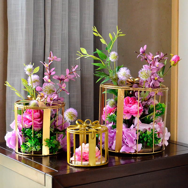Eurostyle Iron Art Bird Cage Gift Box Pendulum Pieces Emulation Floral Hotel Minjuku Shooting Shop Window Adornment Shop Windows Display