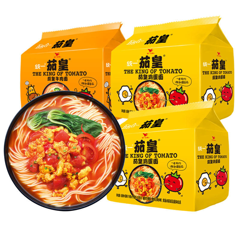 Unified Eggplant Emperor Xinjiang Tomato Egg Noodle Bag Instant Noodle Tomato Beef Noodles Convenient Instant Instant Noodles Eggplant Yellow
