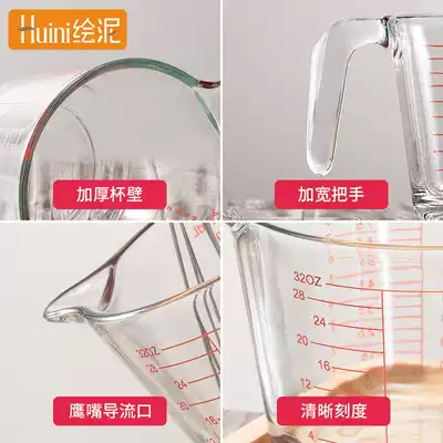 Glass measuring cup with scale High temperature resistant household food grade large capacity baking with handle meter ml beating egg cup