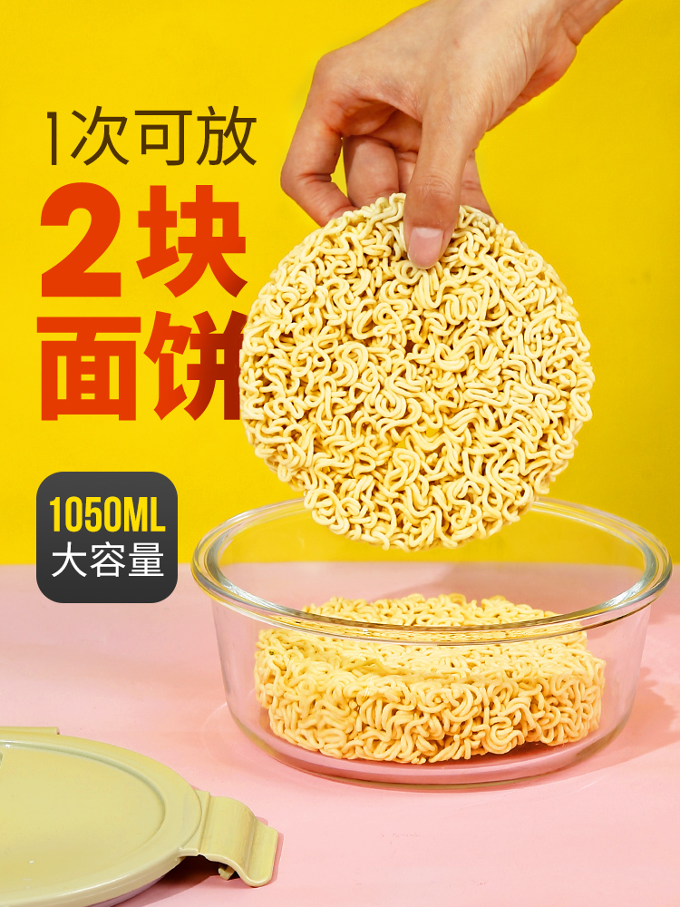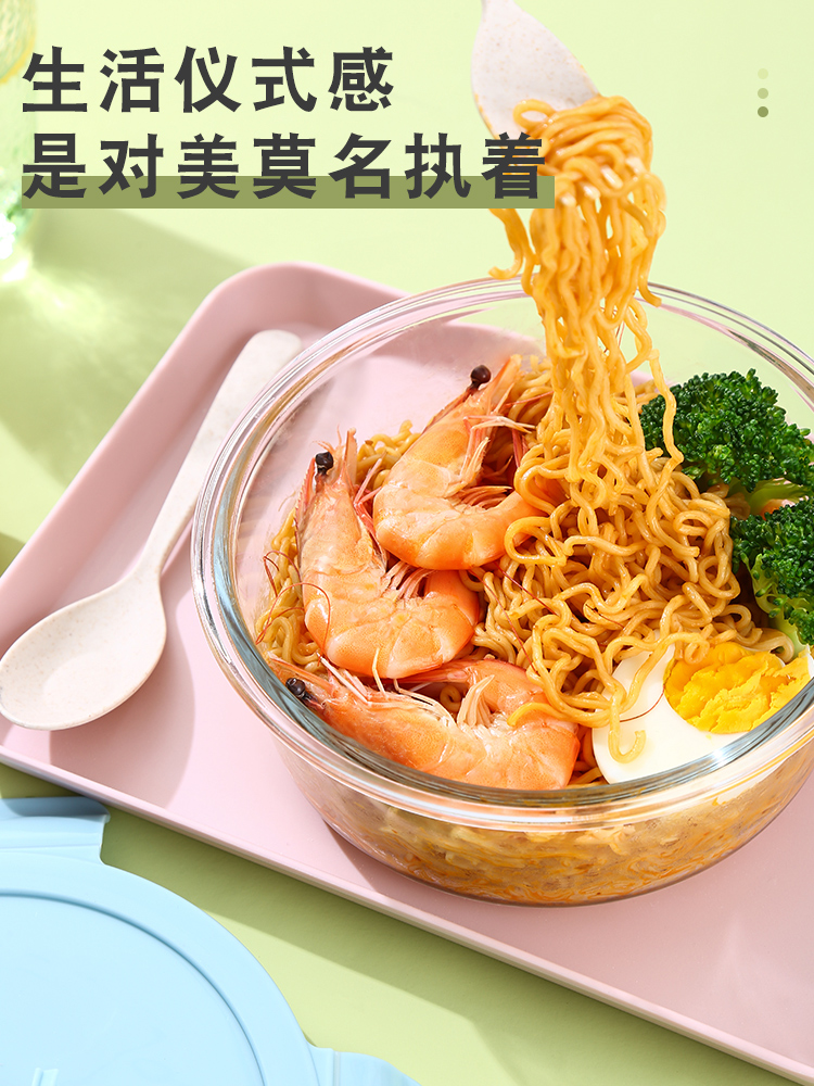 Glass instant noodle bowl with lid student dormitory single large soup bowl high temperature rice bowl salad bowl boy large capacity