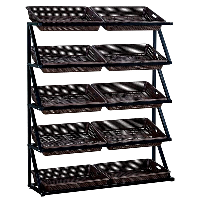 Five floors in double row with dozens of green solid baskets five floors with dozens of green imitation rattan baskets five floors with dozens of brown imitation vine baskets five layers of double platoon with dozens of black imitation vine baskets five layers of single platoon with five green solid baskets five layers of single platoon