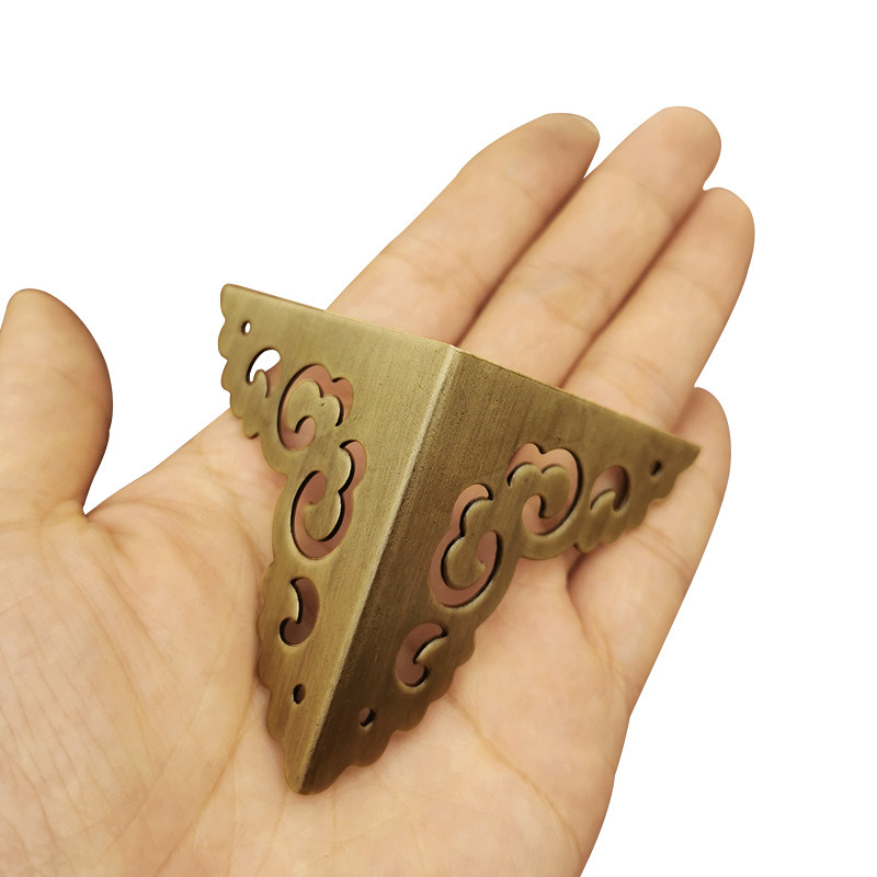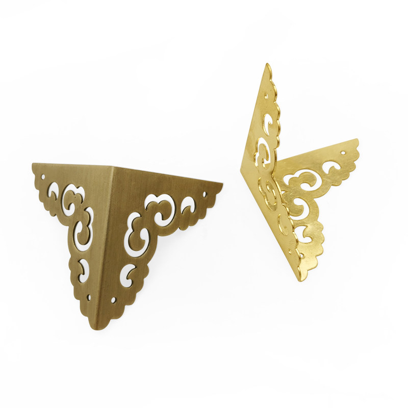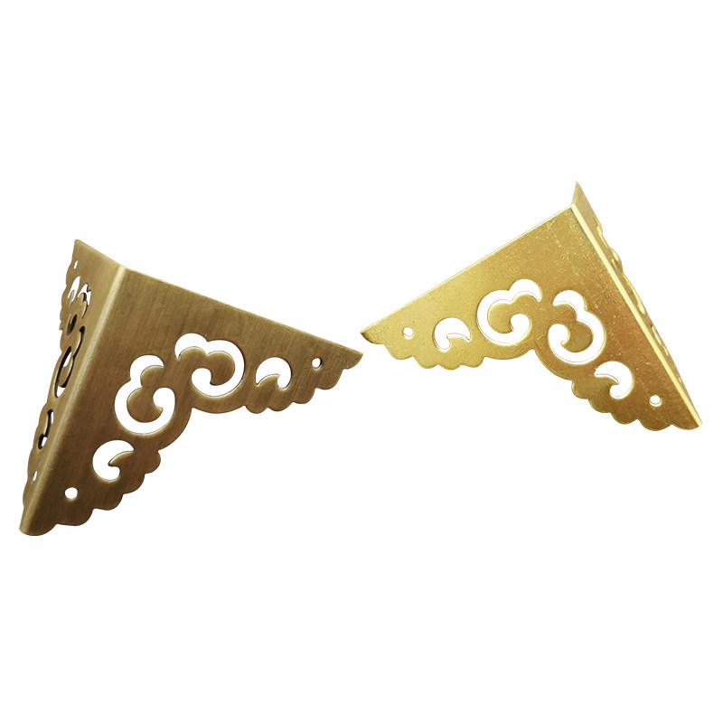 Chinese brass bag corner guard corner protector wrapping imitation ancient furniture copper accessories Zhangmu box corner flower Xiangyun hollowed-out two-faced corner code